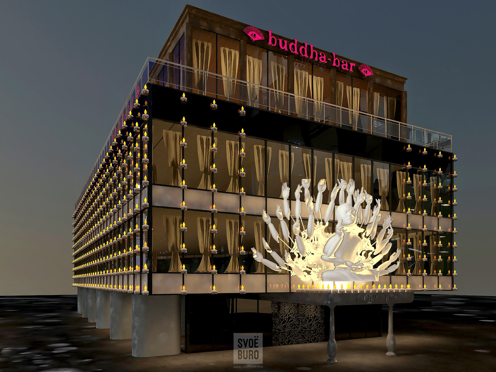 Buddha Bar Moscow. Освещение фасада